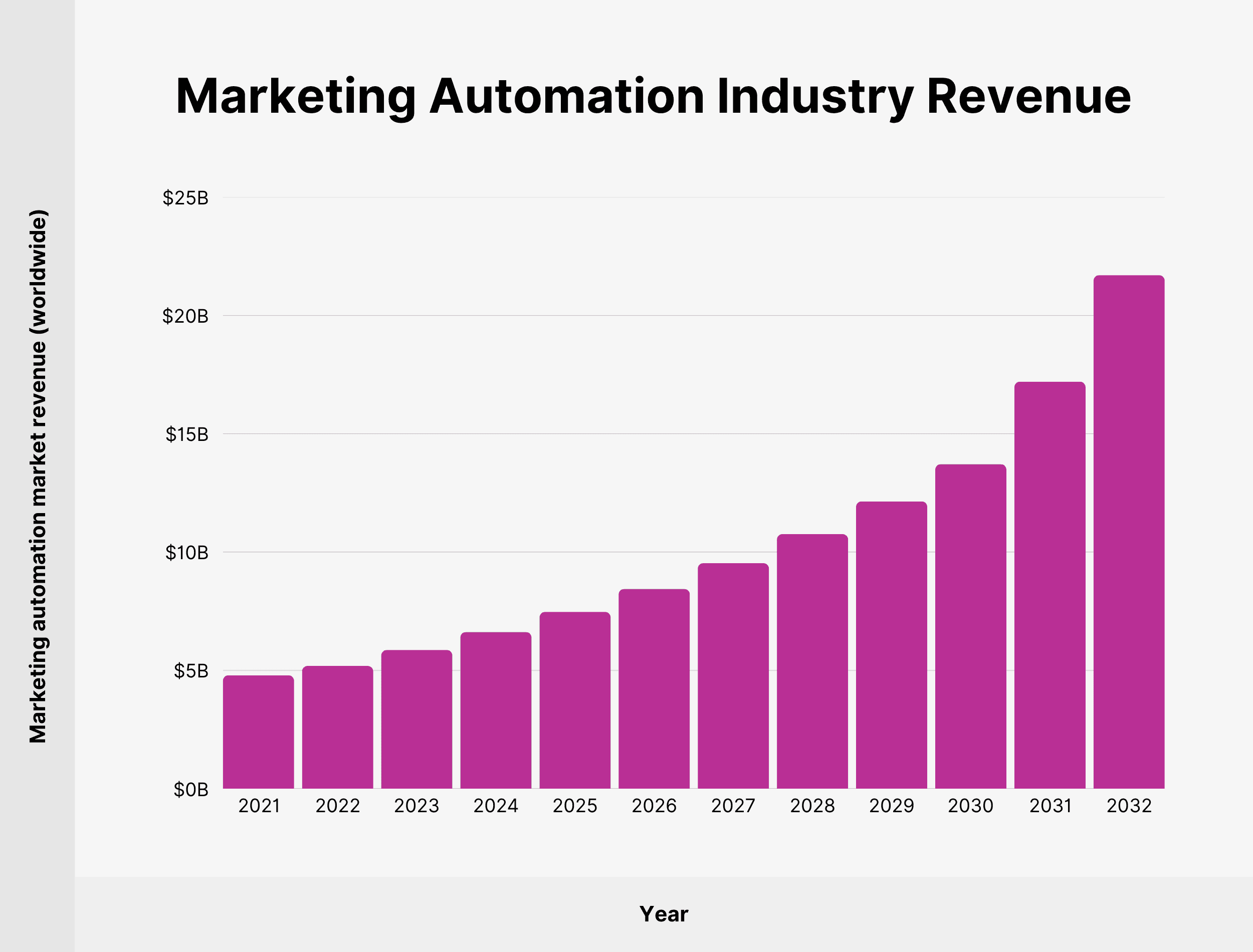 • Between 2026 and 2032, the worldwide marketing automation industry revenue is forecasted to grow by 62.4% from $8.44 billion to $21.7 billion – Statista