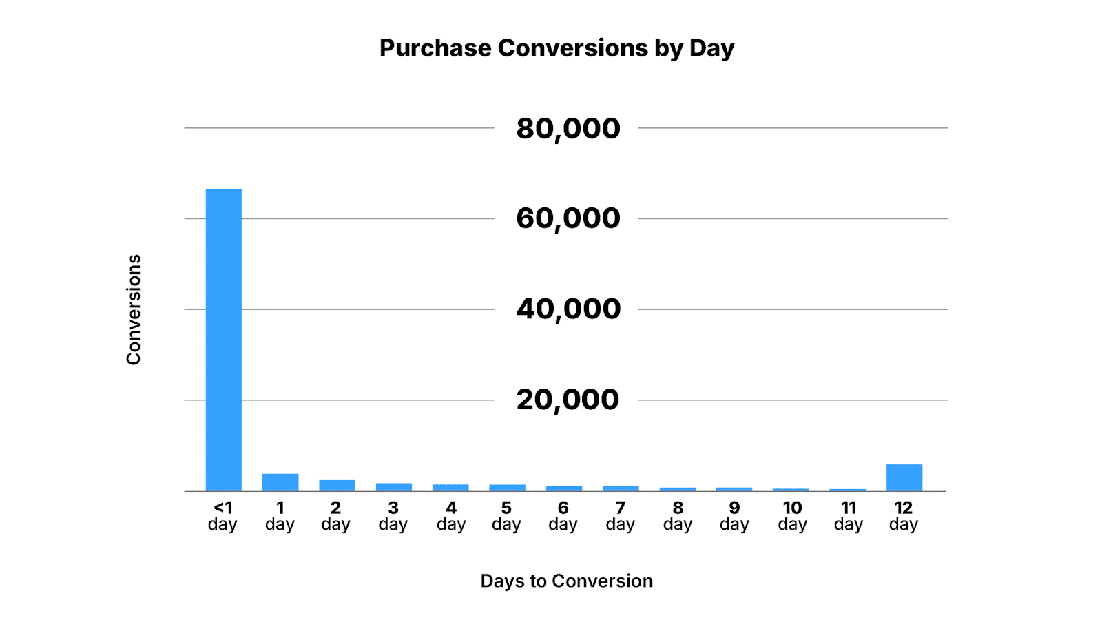 Before making any changes, we analyzed conversion path data to understand how long customers were actually taking to purchase. Over the last three months, users converted in an average of 2.2 days, with the majority of conversions happening in less than a day: