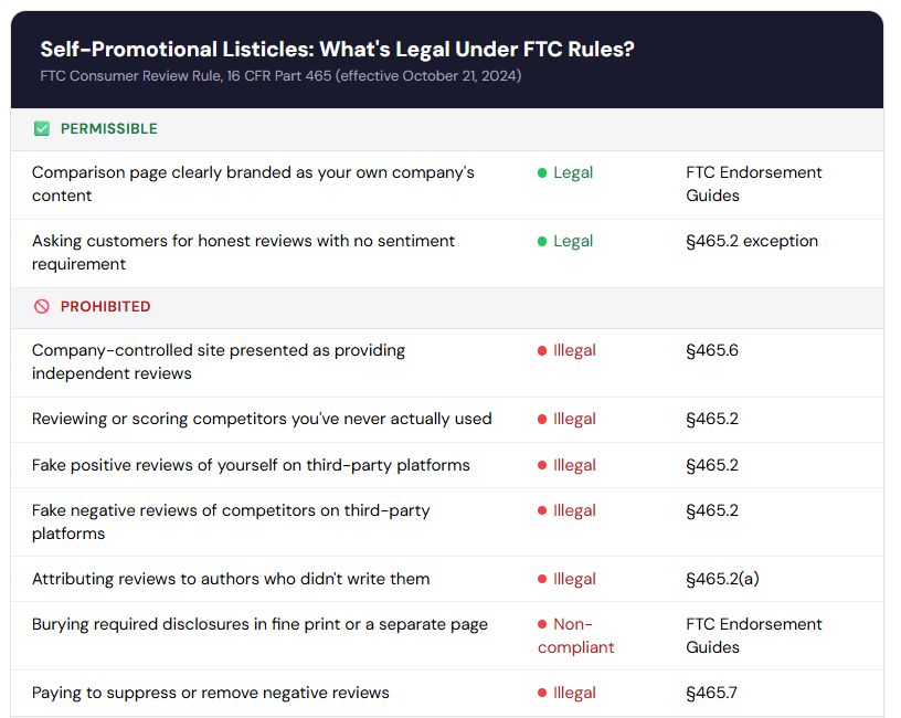 If you rank your own product #1 in “best of” listicles, it’s not just a search-quality issue — it may violate FTC rules that took effect in October 2024.