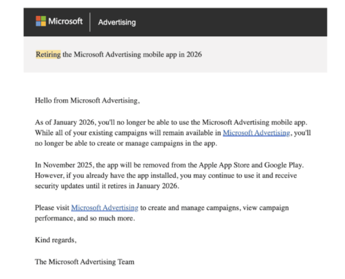 Microsoft is alerting users that the Microsoft Advertising mobile…