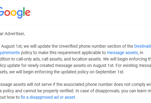 Starting August 1st, Google Ads will expand its Unverified Phone…