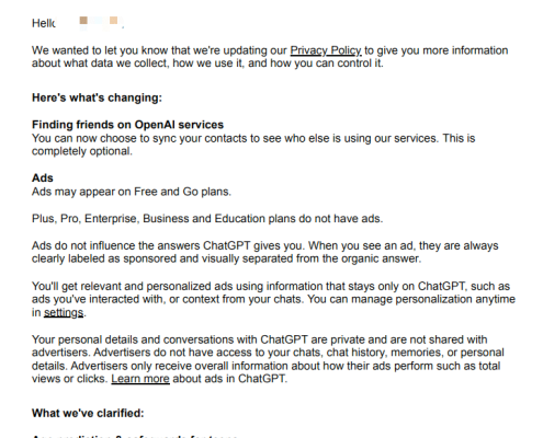 OpenAI updates privacy policy as ads expand in ChatGPT