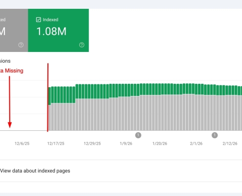 Google Search Console page indexing report missing data prior to December 15