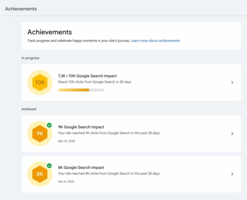 Google Search Console adds achievements section