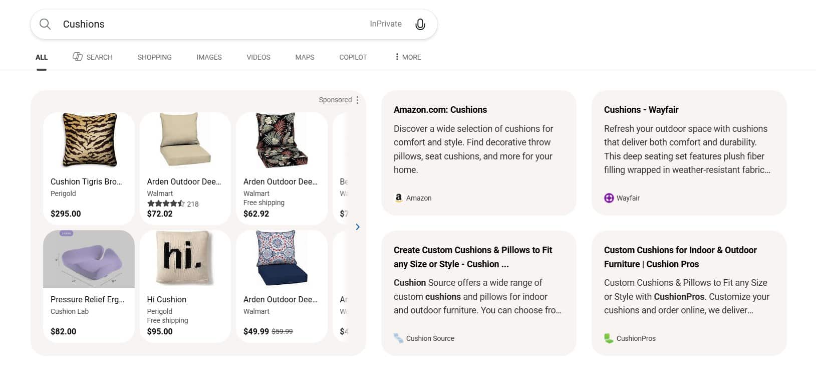 What was spotted: The test was flagged by Digital Marketer Sachin Patel, who noticed the expanded layout while searching for cushions on Bing. The format pairs a large double-rowed sponsored carousel with organic cards from individual websites beneath it.