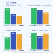- Exact match remains the most efficient, delivering higher CTRs, conversion rates, and ROAS – but with fewer impressions.