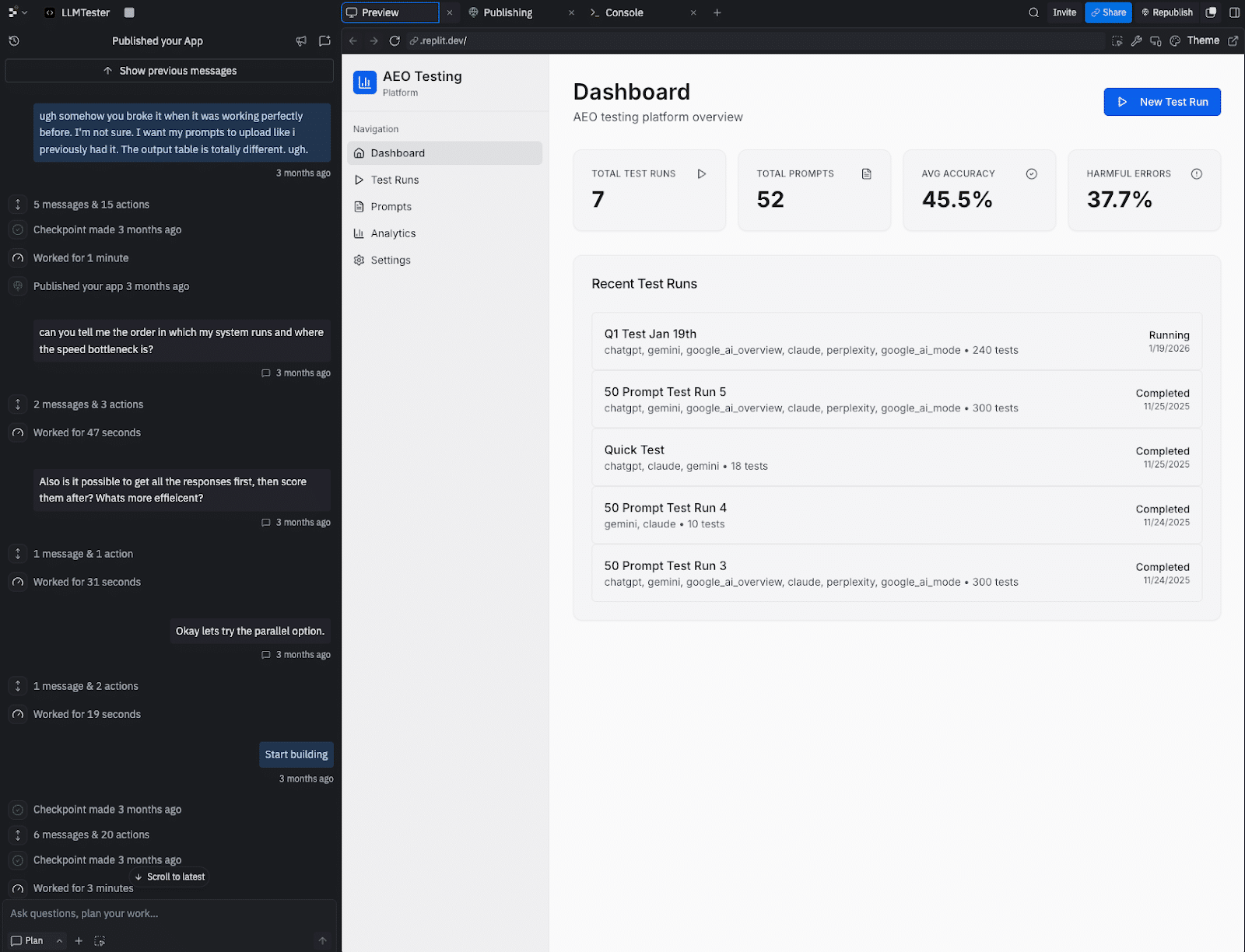 That last question is critical. I didn’t ask it, and I lost a whole batch of test results because the agent hadn’t built a database to save them.
