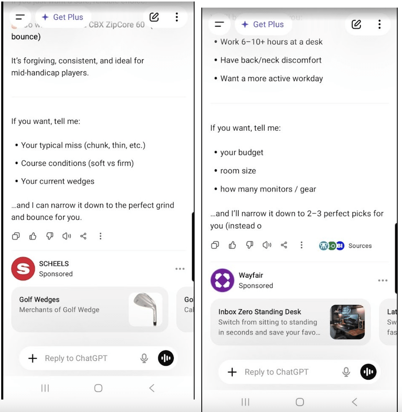 How often they appear. In a test of 500 questions across the mobile app, roughly one in five questions in a new conversation thread triggered an ad at the bottom of ChatGPT’s response — always as a website link button, always tailored to the topic of the question.