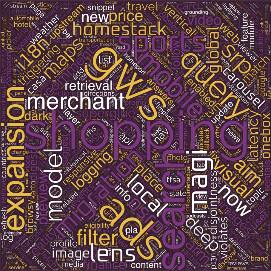 Ci-dessous le tag cloud de la liste complète des expérimentations, donnant une idée des composants sur lesquels Google porte ses efforts actuellement :