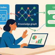 The LLM synthesizes information from the search index and the knowledge graph to create the final answer delivered to the user.