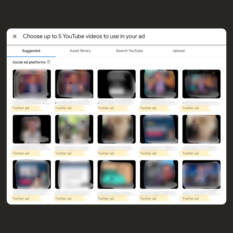 Advertisers setting up Performance Max (PMax) campaigns in Google Ads are spotting something unexpected — video assets from their Twitter (X) ad accounts showing up in the “Suggested” section for creatives.