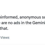 - “This story is based on uninformed, anonymous sources who are making inaccurate claims. There are no ads in the Gemini app and there are no current plans to change that.”