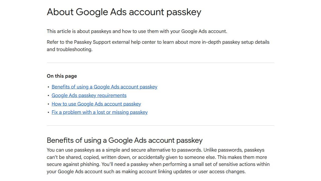 Google publishes new Google Ads passkey help doc