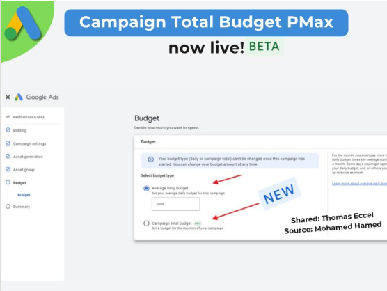 - The total budget option now appears alongside the traditional average daily budget in PMax.