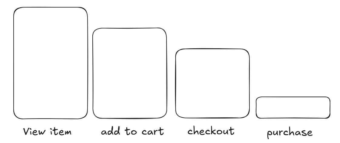 In the example above, the biggest drop-off happens after an item is viewed, before it’s added to the cart.