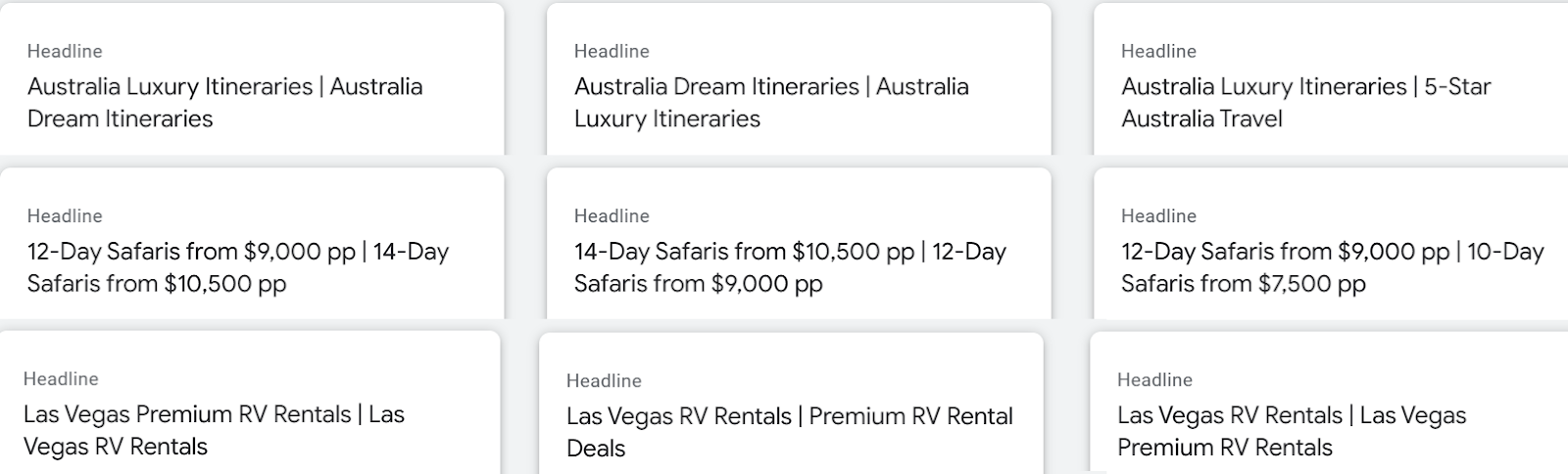 In these instances, we’re just wasting our characters in Headline 2 since it doesn’t say anything new compared to Headline 1.
