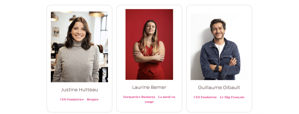 - Conférences inspirantes par des intervenants renommés : Justine Hutteau (Respire), Guillaume Gibault (Le Slip Français), Laurine Bemer (La Meuf en Rouge), Abdelilah Halim (Orchestra), Grégory Pairin (Ocarat)…