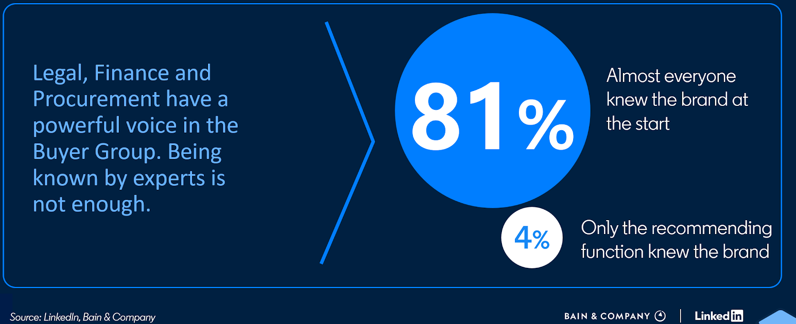 Research from LinkedIn and Bain & Company found 86% of buyers already have their choices predetermined on “Day 1” of a buying cycle. Even more critically, 81% ultimately purchase from a vendor on that Day 1 list.