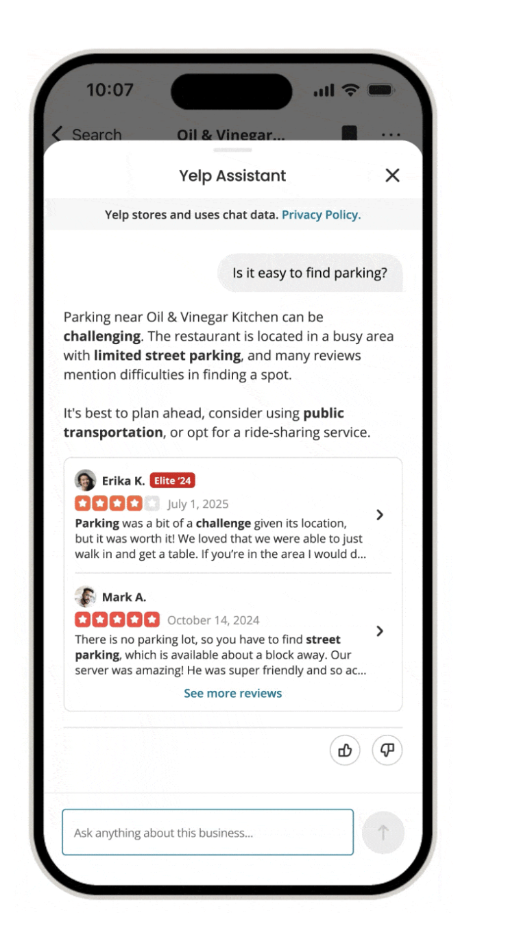 - Yelp Assistant, an upgraded chatbot that instantly answers customer questions about restaurants, shops, or attractions—citing reviews and photos.